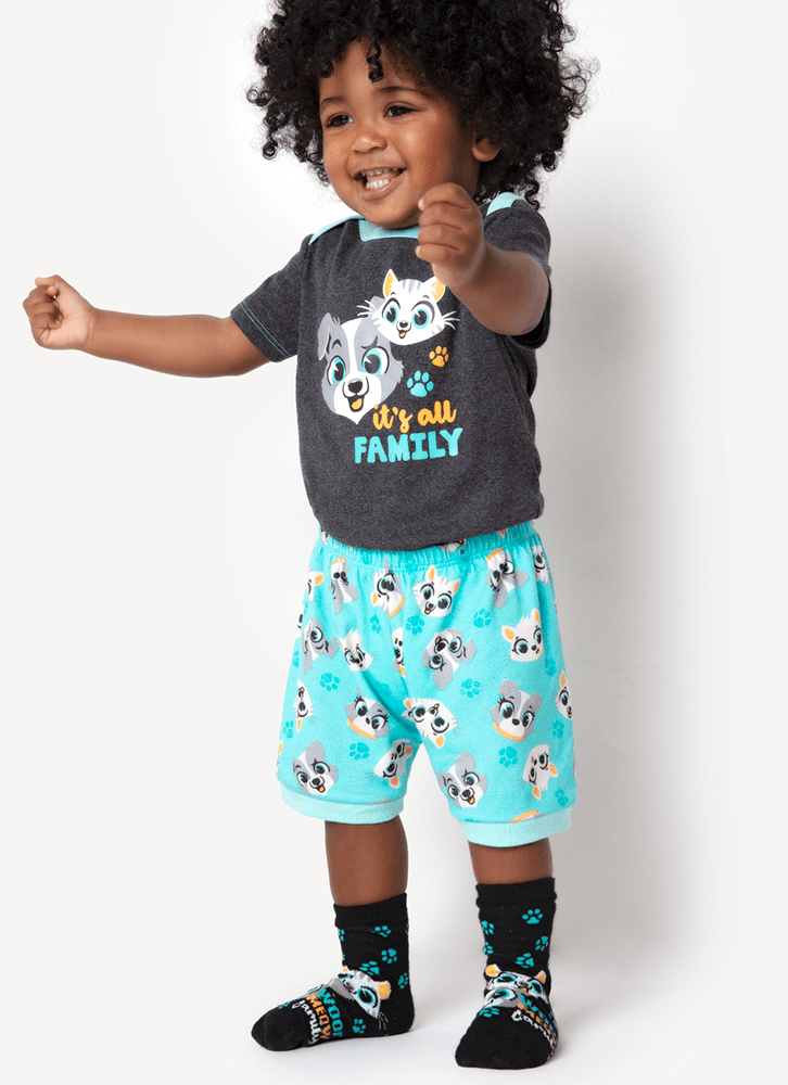 Pijama Manga Curta Bebê Menino Algodão Família Pets