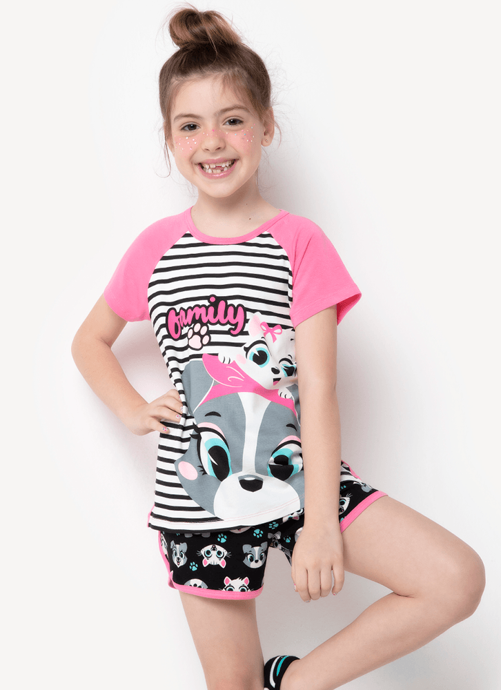 Pijama Manga Curta Menina Teen Viscolycra Família Pets