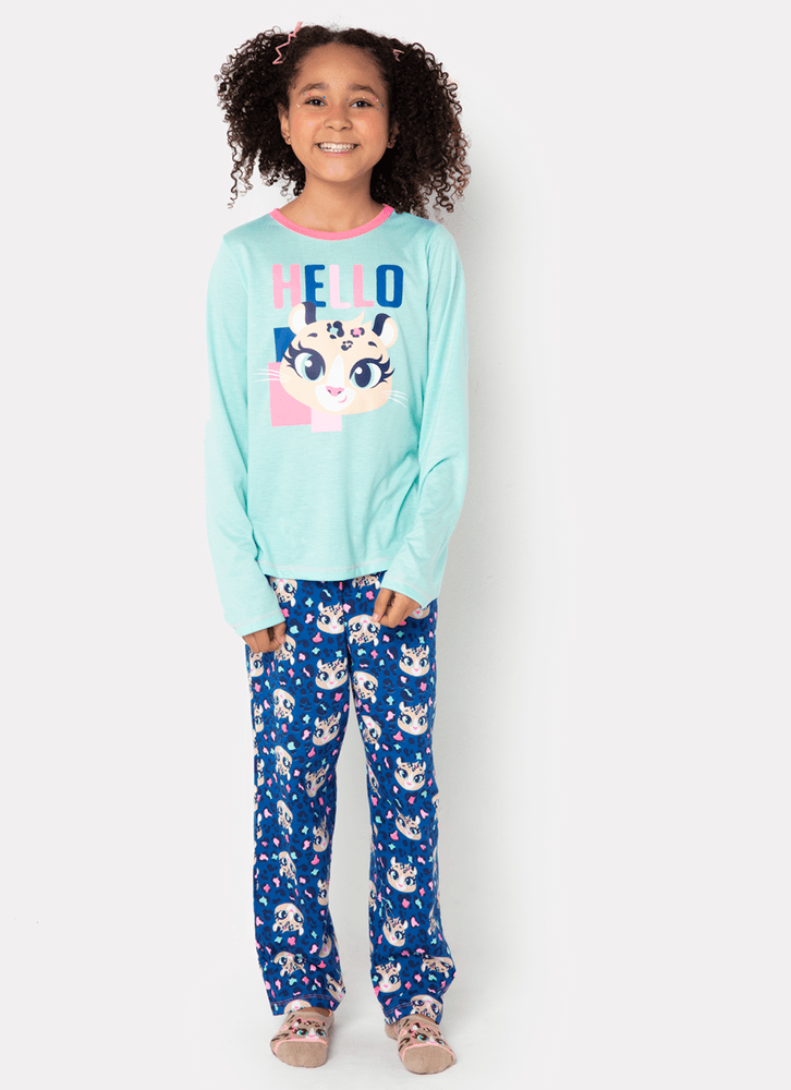 Pijama Manga Longa Menina Teen Algodão Onça