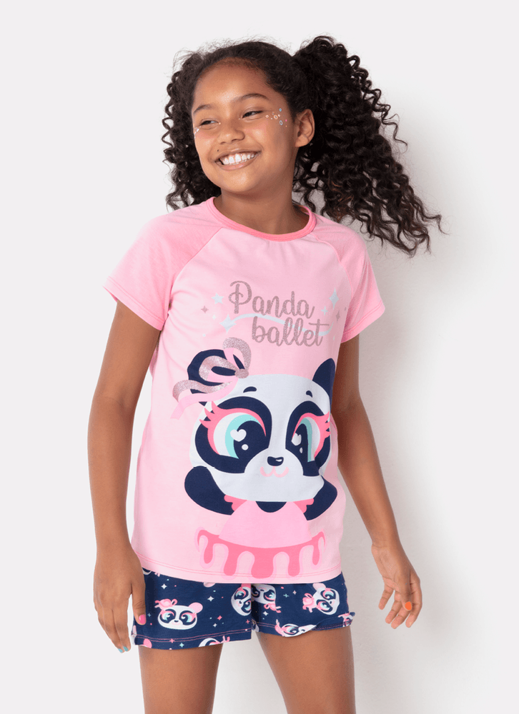 Pijama Manga Curta Menina Teen Viscolycra Panda Bailarina