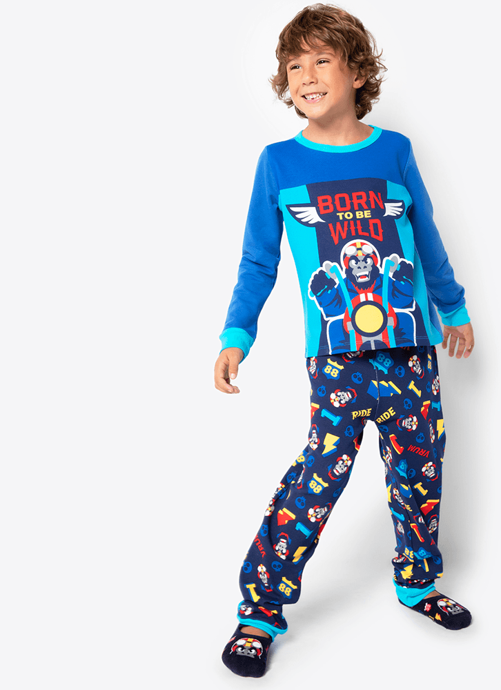 Pijama Manga Longa Menino Viscolycra Premium Gorila Rider