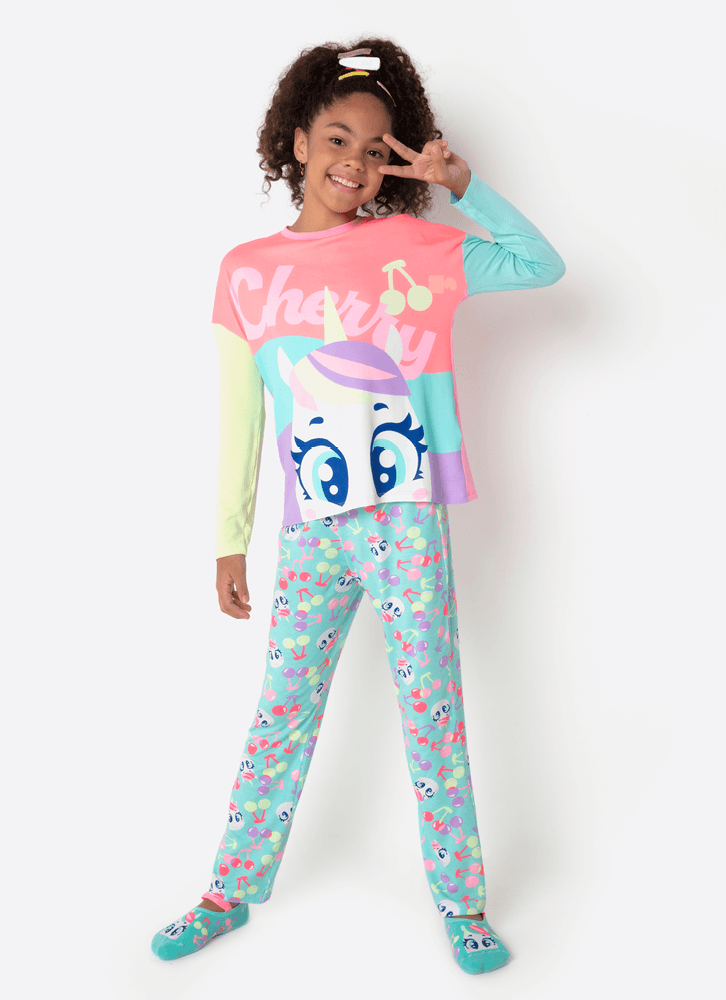 Pijama Manga Longa Viscolycra Menina Teen Unicórnio Cherry