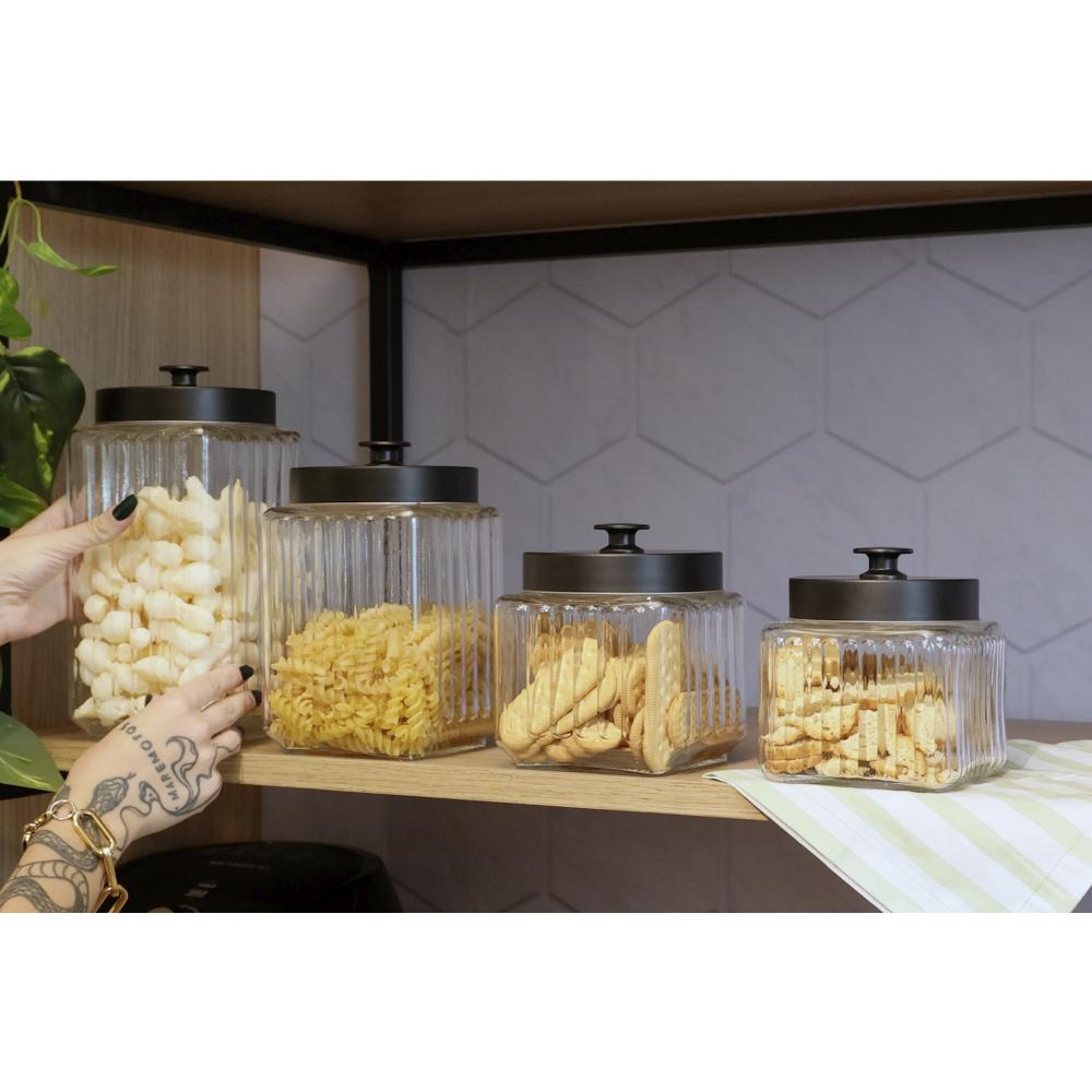 Porta Mantimento Lyor Vegas de Vidro com Tampa Preto 1,2L