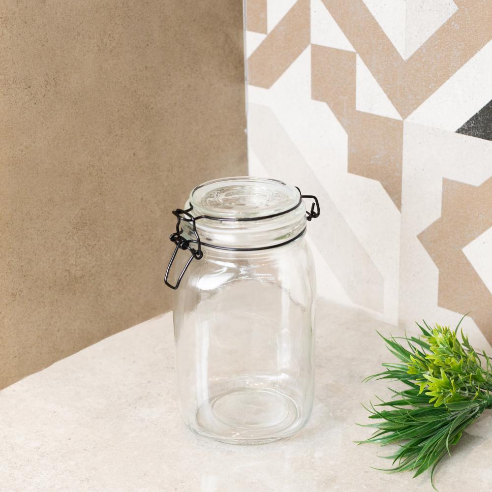 Pote Hermético Lyor Vintage de Vidro com Metal Preto 1L