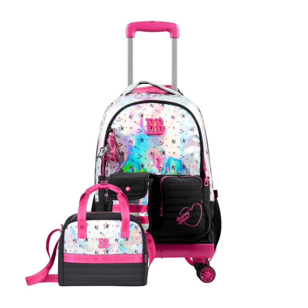 Kit Mochila de 4 Rodinhas + Lancheira Rebecca BonBon Preta