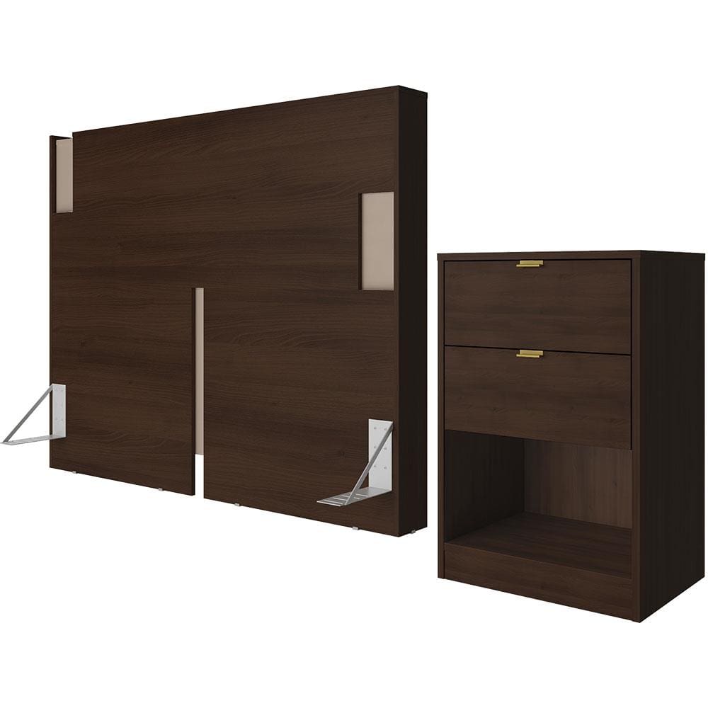 Cabeceira para Cama Box Casal e Queen Bartira Diplomata com Revestimento em Pintura UV + Mesa Bartira Diplomata com 2 Gavetas
