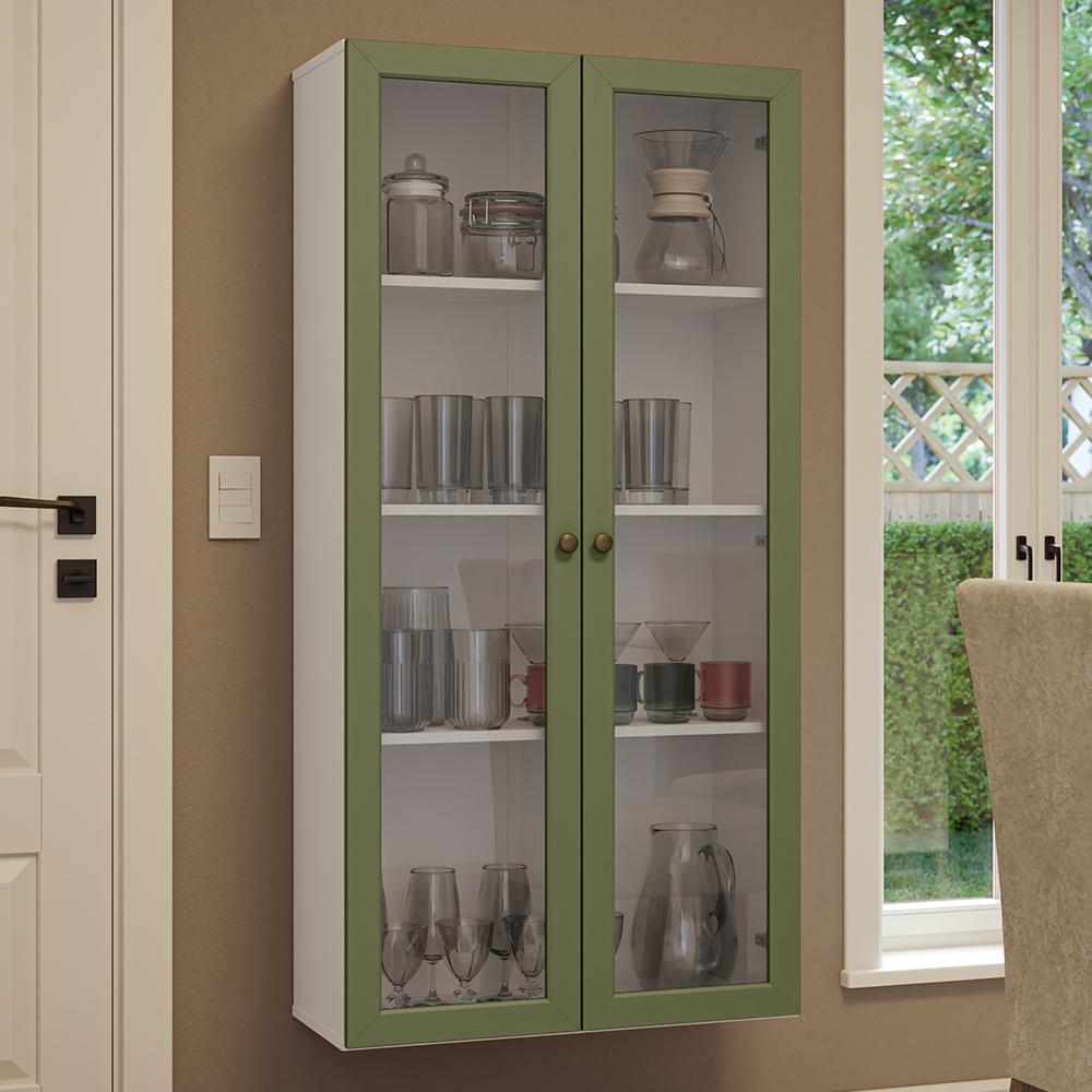 Cristaleira Suspensa 70 cm 2 Portas de Vidro Branco/Verde Vik Madesa