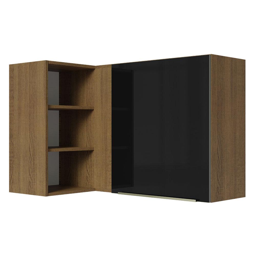 Armário Aéreo de Canto com Adega Acoplada Madesa Lux 1 Porta - Rustic/Preto