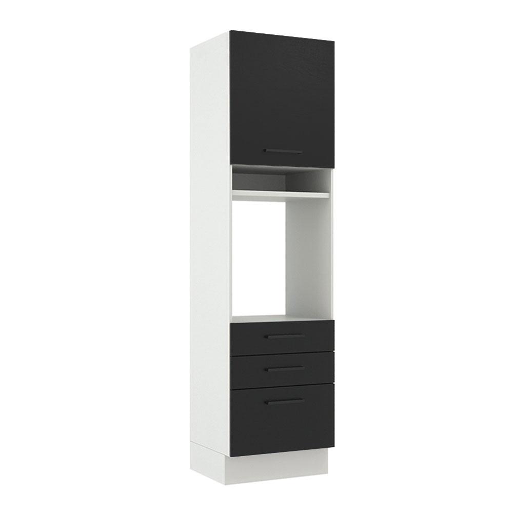 Torre Quente Armário de Cozinha 60 cm 1 Porta 3 Gavetas Branco/Preto Agata Madesa