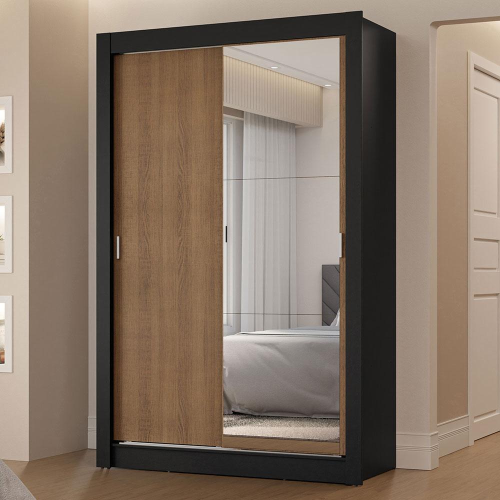 Guarda-Roupa Solteiro 2 Portas de Correr com Espelho 2 Gavetas Preto/Rustic Vivare Madesa