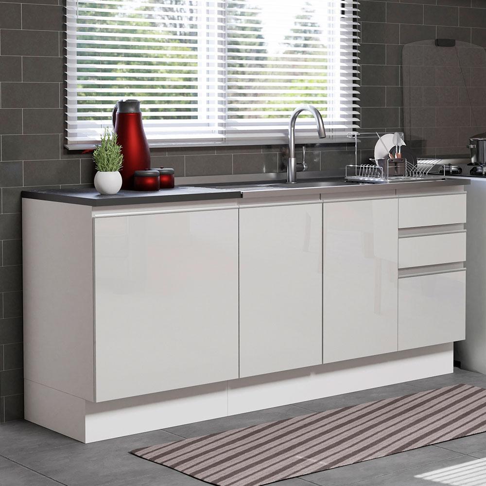 Kit com 2 Balcões de Cozinha Madesa Acordes 100% MDF (Sem Tampo e Pia) Frentes Branco Brilho