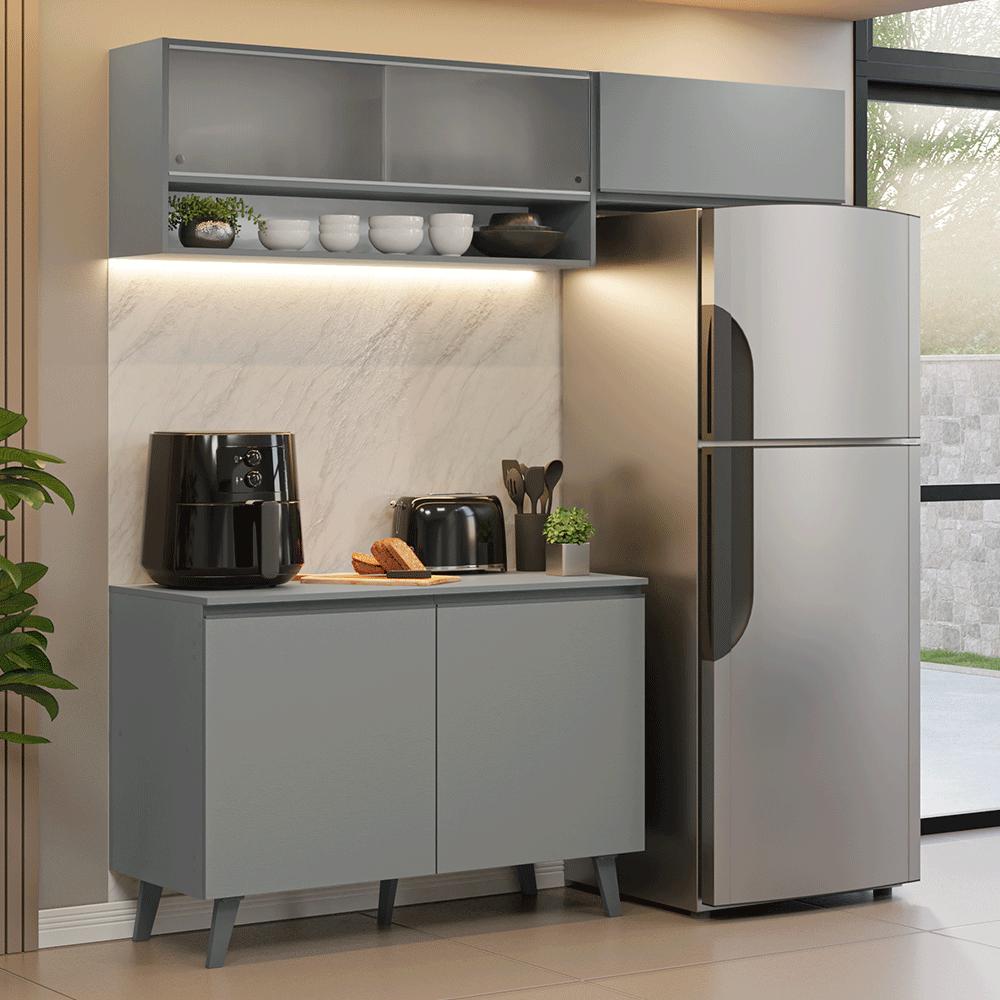 Torre Quente Armário de Cozinha 60 cm 1 Porta 3 Gavetas Branco/Crema Agata Madesa