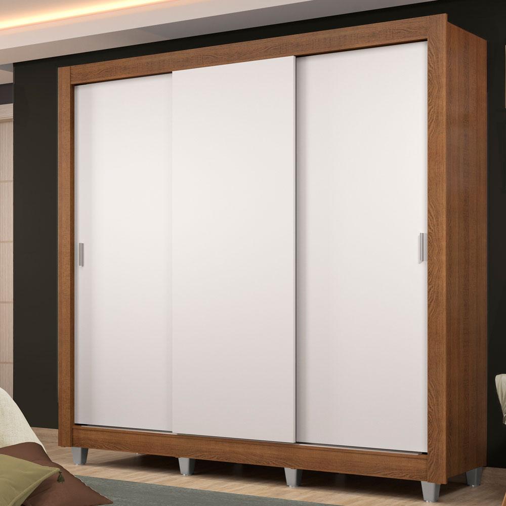 Guarda Roupa Casal Madesa Lyon Plus 3 Portas de Correr 4 Gavetas com Pés - Branco