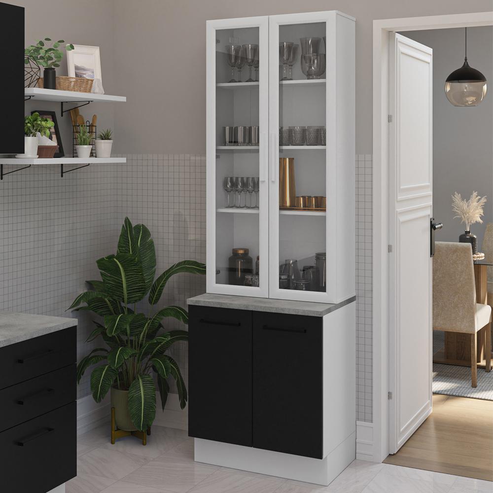 Kit Balcão + Cristaleira 70cm Branco/Preto Agata Madesa 01