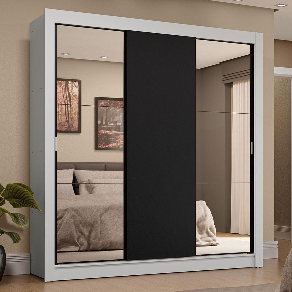 Guarda-Roupa Casal 3 Portas de Correr com Espelhos 4 Gavetas Preto/Branco Sublime Plus Madesa