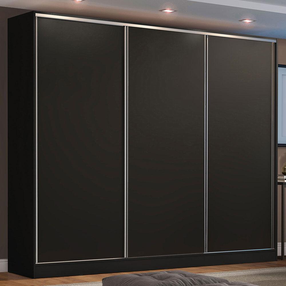 Guarda Roupa Casal 100% MDF Madesa Zurique 3 Portas de Correr - Preto