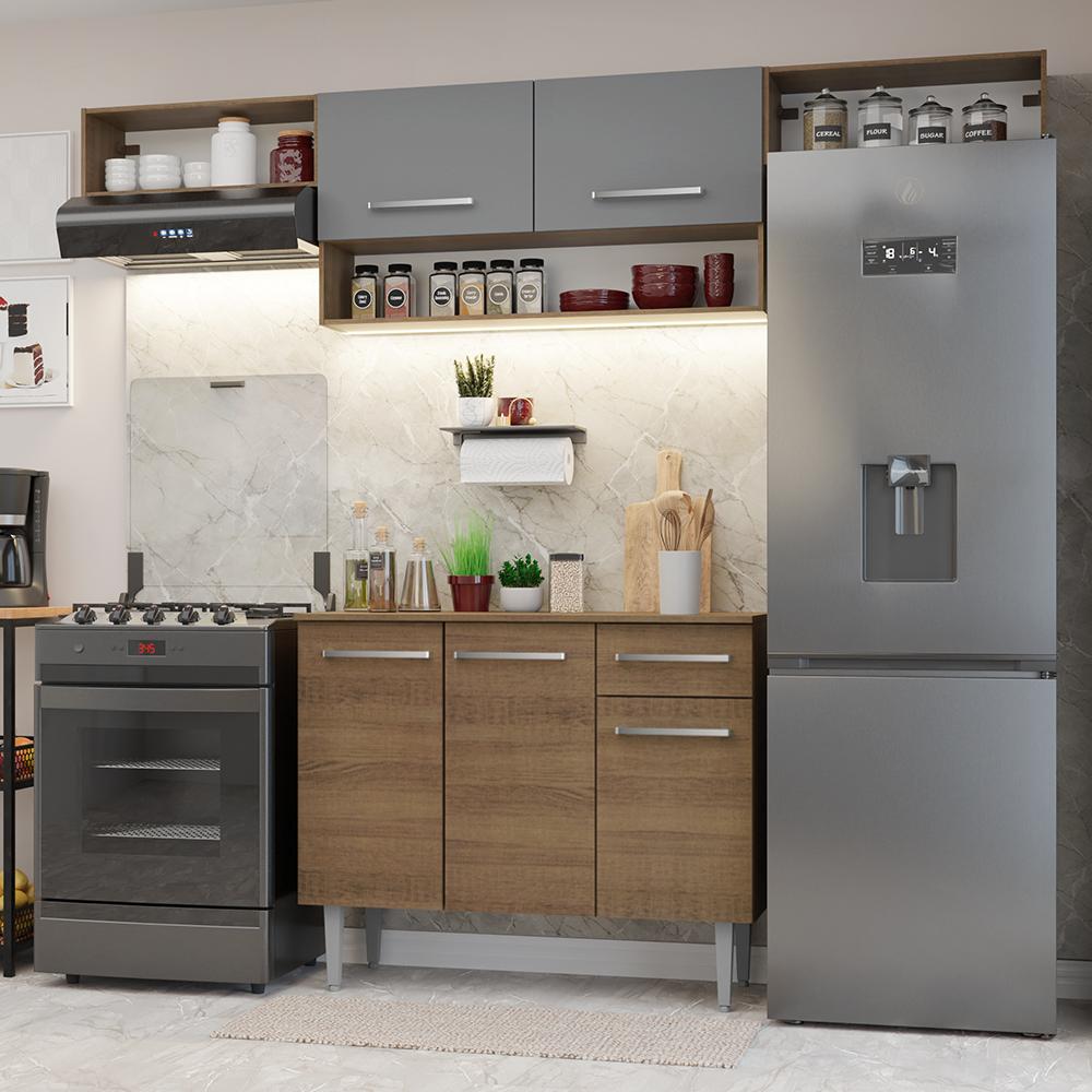 Armário de Cozinha Completa 225cm Rustic/Cinza Emilly Madesa 01