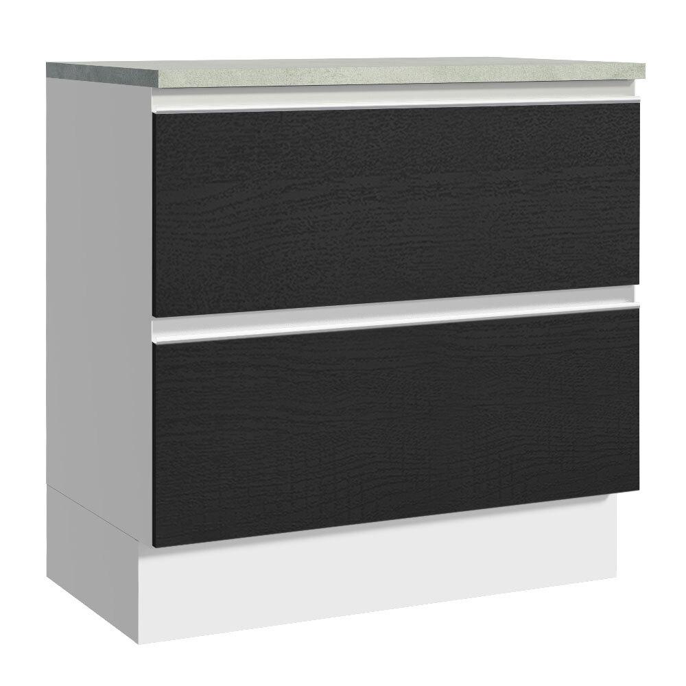 Balcão Armário de Cozinha 80 cm 2 Gavetas Branco/Preto Glamy Madesa