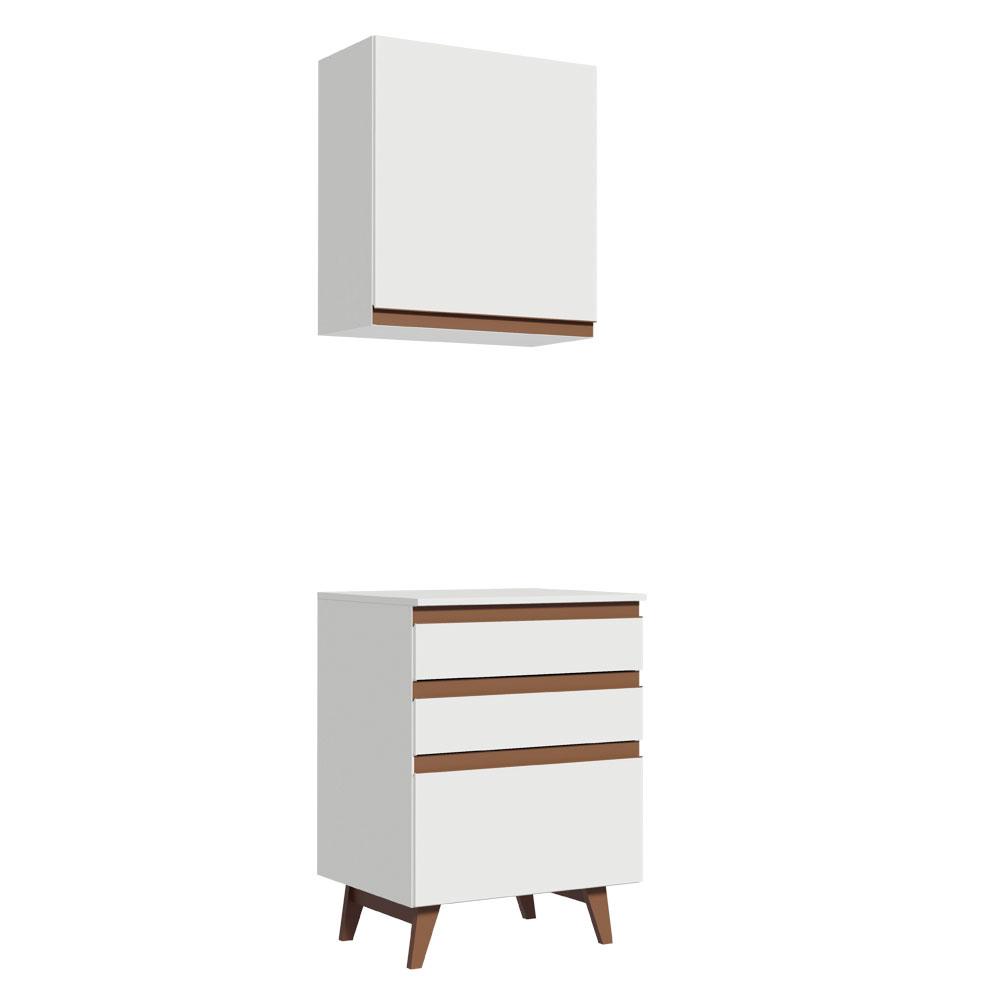 Kit Armário de Cozinha Aéreo e Balcão com 3 Gavetas 60 cm Branco Reims Madesa