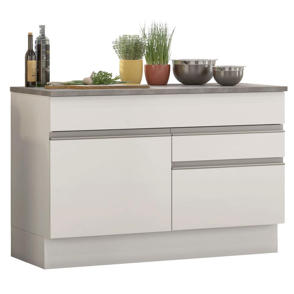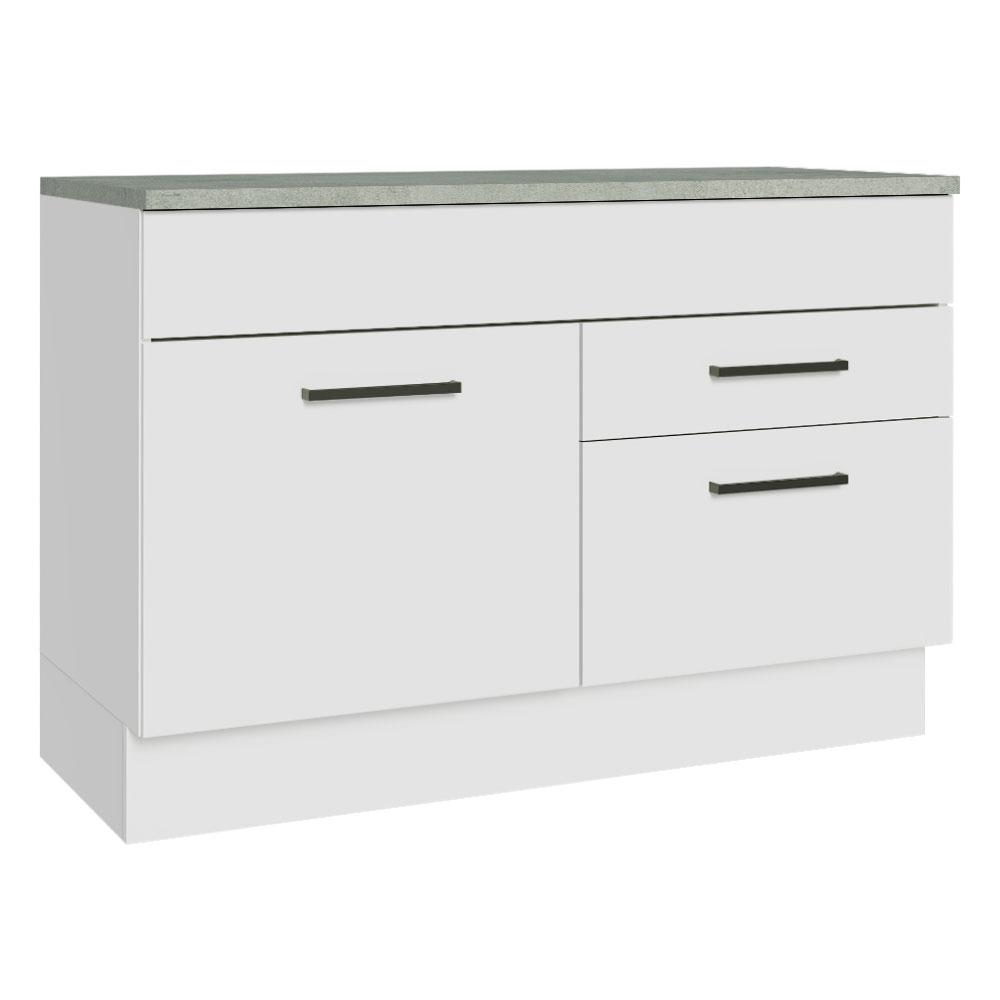 Balcão de Pia Armário de Cozinha 120 cm 1 Porta e 2 Gavetas (Com Tampo) Branco Glamy Madesa