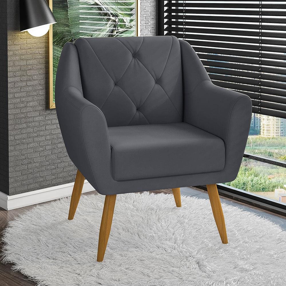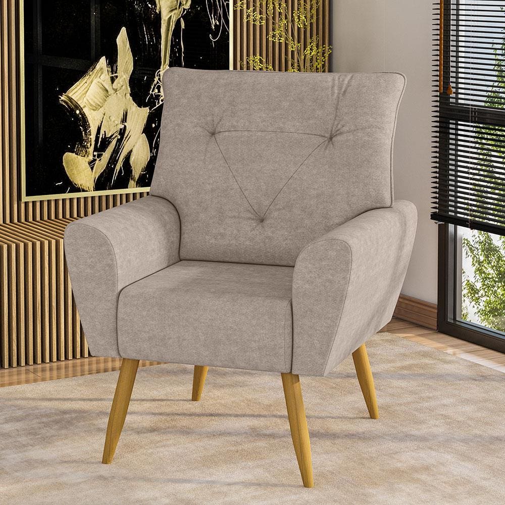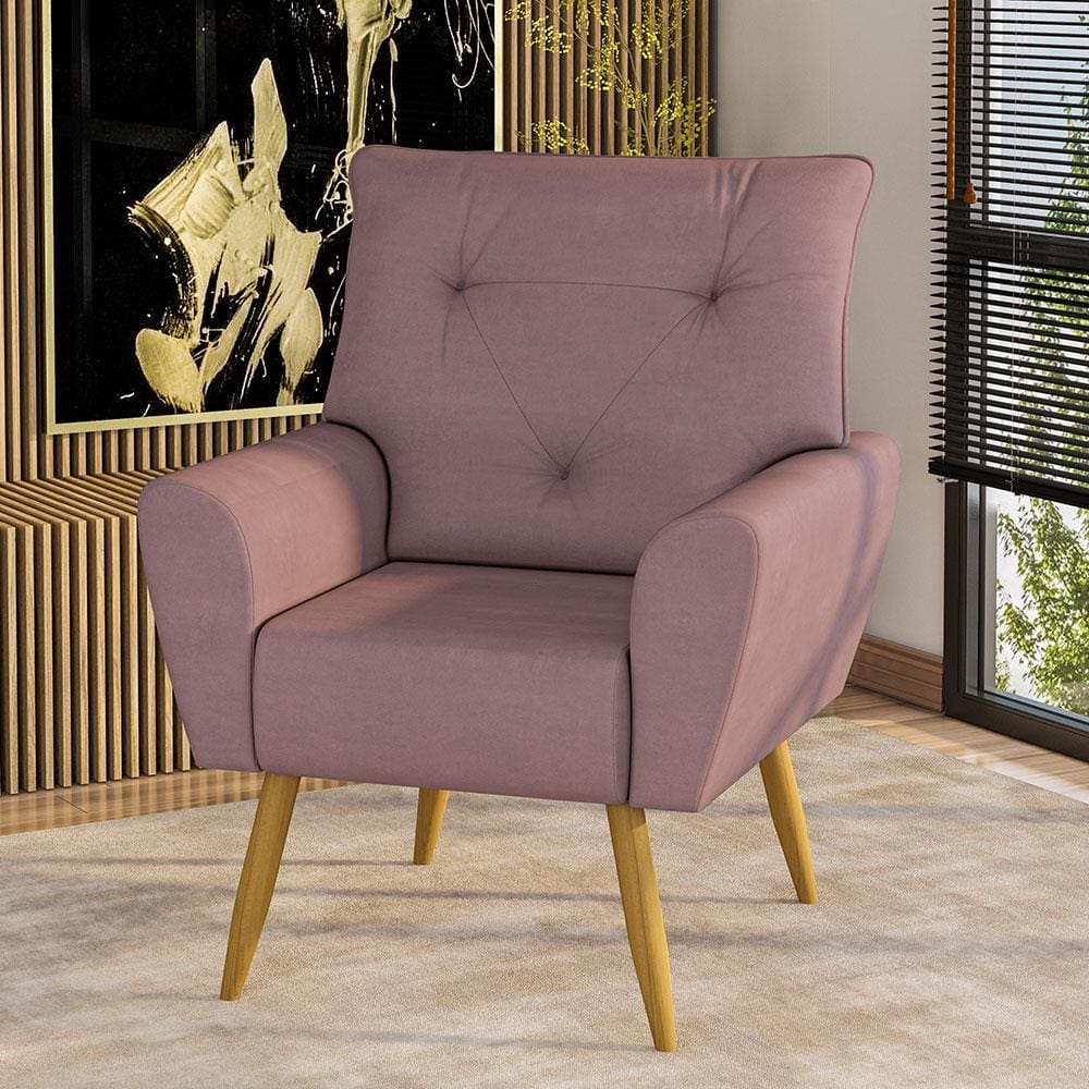 Poltrona Matrix Dalia com Pés de Madeira e Revestida em Veludo Turquey