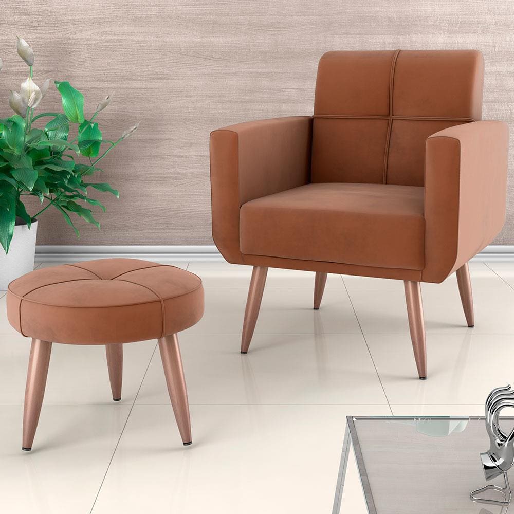 Poltrona Matrix Havana com Puff e Revestimento em Tecido Veludo