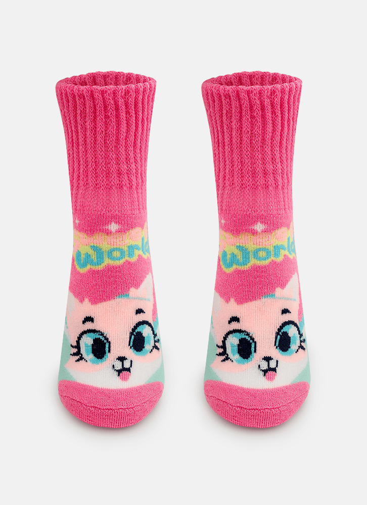 Meia Cano Curto Antiderrapante Menina Gata Picnic