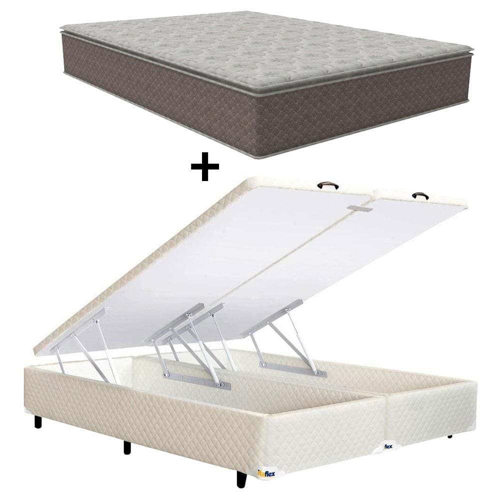 Colchão Queen Size Umaflex Berlim com Pillow Top e Molas Ensacadas + Base Box Itaflex Universal com Baú 70,5x158x198cm - Castor/Branco/Bege