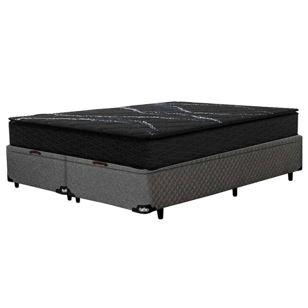 Colchão Queen Size Umaflex New Itália Black D26 com Molas Ensacadas e Pillow Top + Base Box Itaflex Universal com Baú 65,5x158x198 cm - Preto/Granite