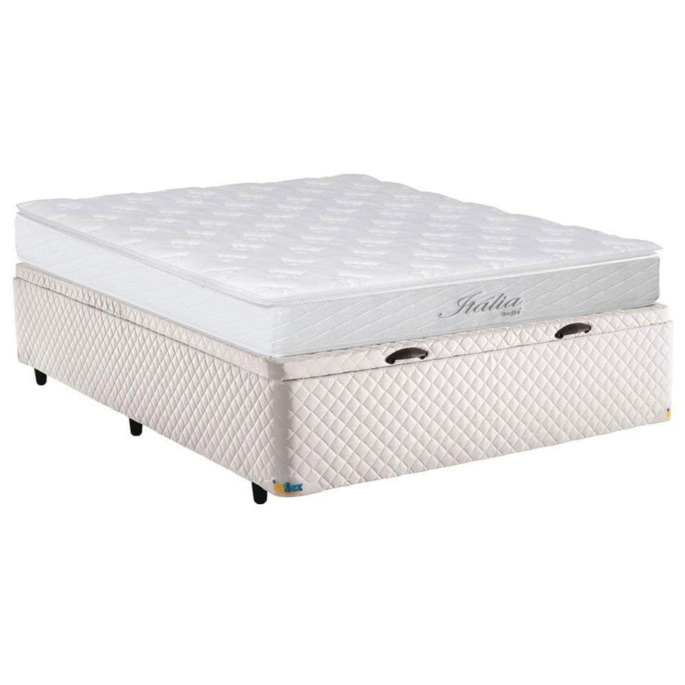 Colchão de Casal Umaflex Itália com Pillow Top e Molas Ensacadas + Base Box Itaflex com Baú - 66,5x138x188cm - Branco