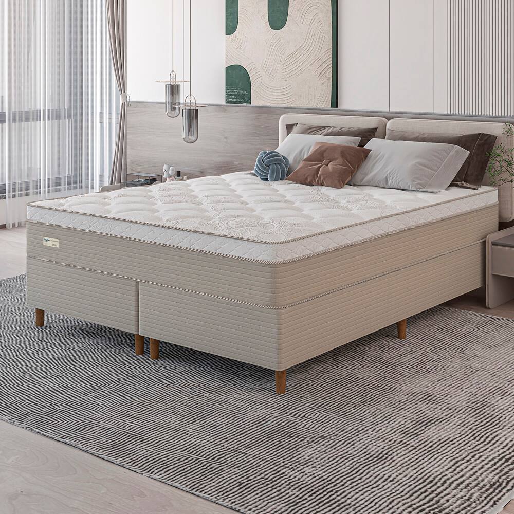 Cama Box King Size Umaflex Milão Bipartida com Revestimento em Malha + Colchão com Euro Pillow e Molas Ensacadas 30x193x203cm – Bege e Branca