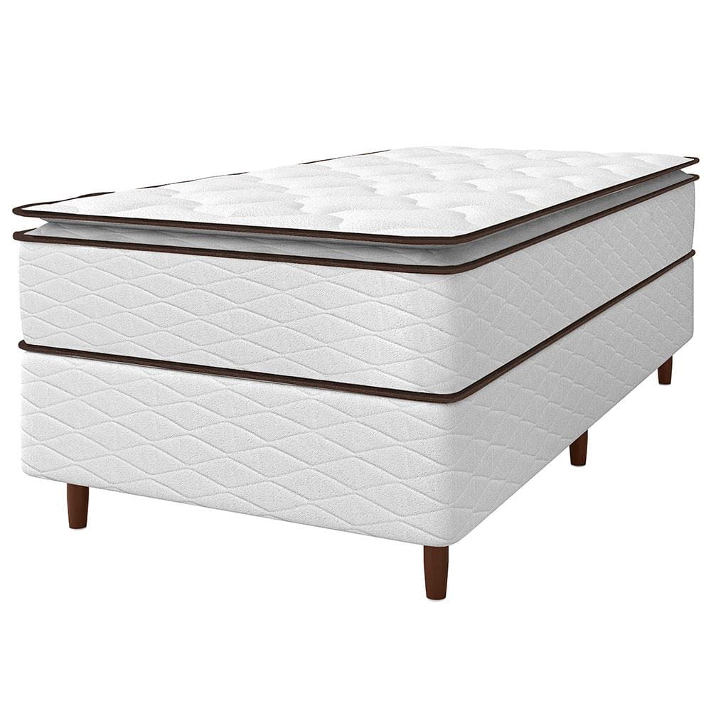 Cama Box de Solteiro Umaflex New Itália com Molas Ensacadas e Pillow Top D26 - 63x88x188cm - Branco/Marrom