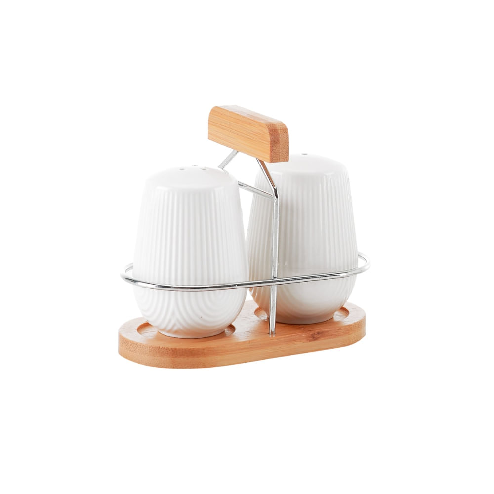 Saleiro E Pimenteiro De Cerâmica Com Suporte 3 Peças