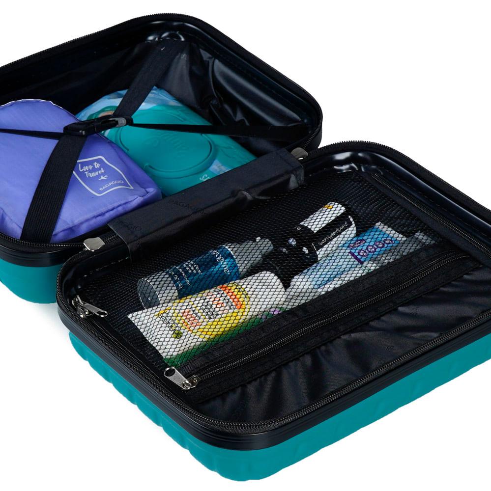 FRASQUEIRA DETROITA Frasqueira Detroit foi pensada para oferecer organização e praticidade no dia a dia ou em viagens. Seu design moderno e resistente é perfeito para quem busca armazenar pequenos itens com segurança e estilo.Principais AtributosMaterial Rígido ResistenteEstrutura durável que protege seus itens contra impactos e é fácil de limpar.Alça Ajustável e FixaMais conforto no transporte.Interior Organizado e FuncionalDivisórias internas com zíper e cintas elásticas para manter seus objetos no lugar. Ideal para cosméticos, acessórios, produtos de higiene pessoal ou roupas.Diferenciais:Alça Carona:Com a Alça carona é possível prender a frasqueira na sua mala, facilitando o transporte.Bagaggio RespondeEssa frasqueira pode ser levada como bagagem de mão?Sim, seu tamanho é ideal para acomodar no compartimento superior ou sob o assento.O material é impermeável?O material oferece resistência à água, protegendo seus itens contra pequenos acidentes.É fácil de limpar?Sim, tanto a parte externa quanto o forro interno são feitos de materiais que facilitam a limpeza.Quais cores estão disponíveis?Disponível nas cores preto, lilás, prata e rosé, verde e vermelha, combinando com diferentes estilos e ocasiões.Especificações: Material: ABSPeso (kg): 0,9 kgDimensões: 31 x 21 x 14 cmCapacidade: 9,1 LCor: Verde Marca: Bagaggio Faixa Etária: Adulto