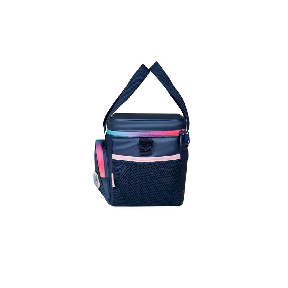 A Lancheira Térmica Feminina Stitch Azul foi pensada para quem quer organização, boa capacidade e um visual que se destaca. Ela mantém os alimentos conservados ao longo do dia e traz os detalhes oficiais de Stitch que conquistam crianças e fãs do personagem. O diferencial está no material perolado azul, no zíper colorido e nos bottons exclusivos, que deixam o visual mais divertido e único.Ideal para a rotina escolar, passeios e atividades do dia a dia, essa lancheira oferece espaço interno amplo, bolso externo para talheres e alça transversal removível que facilita o transporte.Organização e Espaço InternoO interior térmico mantém os alimentos na temperatura ideal por mais tempo, ajudando a conservar lanches, potinhos e bebidas. O bolso frontal para talheres deixa tudo separado e fácil de acessar. Já os bolsos laterais são perfeitos para garrafinhas ou pequenos snacks do dia a dia. A abertura ampla favorece a visualização de tudo, evitando bagunça e perda de itens no fundo da lancheira.onforto no Dia a DiaA lancheira oferece duas formas de uso: pela alça de mão reforçada ou com a alça transversal removível, permitindo que a criança ou responsável escolha o modo mais prático. A presença da alça carona permite acoplar a lancheira à mochila ou mala escolar, facilitando o transporte em dias mais carregados.Durabilidade e Detalhes BagaggioO material perolado azul garante visual moderno e resistente, enquanto o zíper colorido traz uma camada extra de charme. Os bottons do Stitch são removíveis e colecionáveis, agregando personalidade e permitindo customização. A Bagaggio garante materiais de qualidade e acabamento reforçado em cada peça.Design Exclusivo que EncantaO grande destaque deste modelo é a combinação do acabamento perolado com o visual divertido do Stitch, criando uma lancheira sofisticada e temática ao mesmo tempo. Os detalhes multicoloridos e a aplicação do nome do personagem deixam o produto ainda mais especial para quem ama o universo Disney. FAQA lancheira mantém bem a temperatura dos alimentos?Sim. O revestimento térmico interno ajuda a conservar alimentos frescos e bebidas geladas por mais tempo.Cabe potinhos maiores?Sim, o compartimento principal tem abertura ampla e comporta marmitinhas, frutas e garrafinha pequena.A alça transversal é removível?Sim, você pode usar com ou sem a alça, adaptando ao uso escolar ou a passeios.Os bottons acompanham a lancheira?Sim, os bottons do Stitch são inclusos e permitem personalização.Posso acoplar na mochila?Sim, a lancheira conta com alça carona, ideal para encaixar no puxador da mochila de rodinhas. Especificações:Material: PoliésterTamanho: 16 x 23 x 18 cmPeso: 0,290kgCapacidade: 6,6LGarantia: 90 diasFaixa etária: Infanto Juvenil (8 a 12 anos)Outros atributos: -Patch decorativo- Lancheira é térmica. - 1 bolso frontal