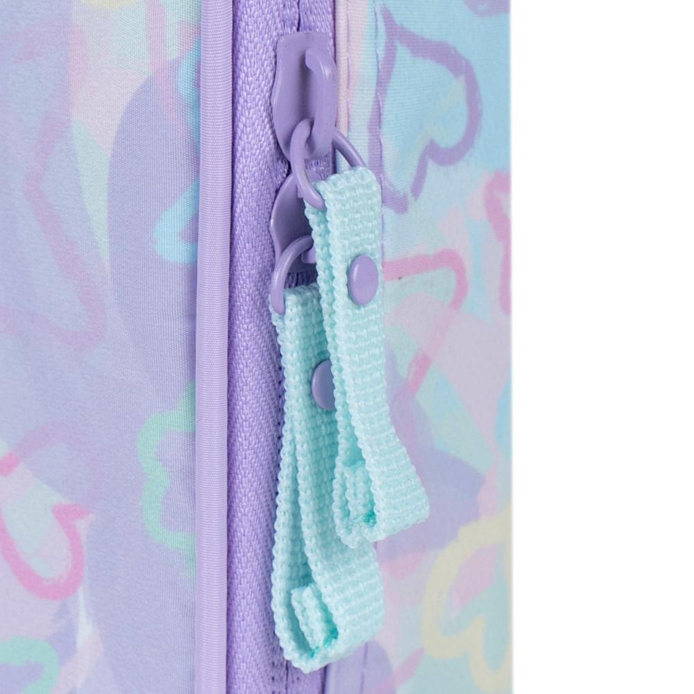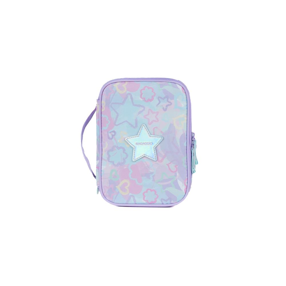 Estojo Box Feminino Grande Star Candy Lilás foi criado para quem precisa de espaço, organização e um visual que se destaca. Ele reúne 34 elásticos internos, perfeitos para deixar canetas, lápis e marcadores sempre à vista, além de comportar até 100 canetinhas sem perder a estrutura. É o estojo ideal para quem gosta de tudo organizado no dia a dia — seja na escola, no cursinho, no trabalho ou em atividades criativas.Além do espaço interno generoso, o modelo traz o charme da coleção Star Candy: tons suaves de lilás, estampa de estrelas coloridas e o aplique frontal em formato de estrela, que dá assinatura e personalidade ao produto. A alça lateral facilita levar o estojo na mão ou dentro da mochila, sem ocupar espaço.Organização e Espaço InternoO grande diferencial deste modelo é sua capacidade real de organização. Os 34 elásticos internos mantêm tudo firme, acessível e categorizado — perfeito para quem usa várias cores, materiais de desenho ou precisa ter sempre o kit completo à mão. O compartimento principal ainda comporta itens soltos, como apontador, tesoura, estilete, cola e borrachas.Com esse estojo, fica fácil visualizar tudo de uma vez e evitar a clássica bagunça de materiais soltos no fundo da mochila.Design que Se DestacaO visual do Star Candy Lilás combina elementos lúdicos com um toque moderno. A estampa pastel com estrelas e corações cria uma identidade marcante, enquanto o aplique de estrela holográfica adiciona brilho e exclusividade. É aquele tipo de acessório que não passa despercebido e conversa tanto com o público juvenil quanto com quem ama papelaria.Durabilidade e Materiais BagaggioConfeccionado em poliéster, o estojo é leve, resistente e fácil de limpar — ideal para o uso diário. A abertura total com zíper duplo traz mais praticidade e agilidade na hora de acessar o conteúdo. É um acessório feito para acompanhar a rotina sem perder a forma.Praticidade para Estudo, Trabalho e CriatividadeSeja para quem escreve muito, desenha, colore, estuda ou trabalha com materiais variados, este modelo resolve o problema de organização sem esforço. O formato box facilita encaixar dentro de qualquer mochila Bagaggio, mantendo tudo no lugar durante o transporte.FAQQuantas canetas cabem no Estojo Box Star Candy?Ele comporta até 100 canetinhas, além de itens extras como tesoura, borracha e cola.Quantos elásticos o estojo possui?São 34 elásticos, distribuídos de forma que você consiga organizar diferentes tipos de materiais.O estojo é rígido ou maleável?Ele tem estrutura maleável reforçada, mantendo o formato sem pesar.É fácil de limpar?Sim. O poliéster permite limpeza rápida com pano úmido e sabão neutro.Serve para uso escolar e profissional?Sim. É versátil e funciona tanto para escola quanto para trabalho ou hobbies criativos.Especificações:Material: PoliésterTamanho:21 x 15 x 6 cmPeso: 0,2Garantia: 90 diasFaixa etária: Infanto Juvenil (8 a 12 anos)Outros atributos:. - Zíper Personalizado.- Traseira com detalhe exclusivo. - 1 compartimento amplo - Elásticos para organização de diversos materiais.