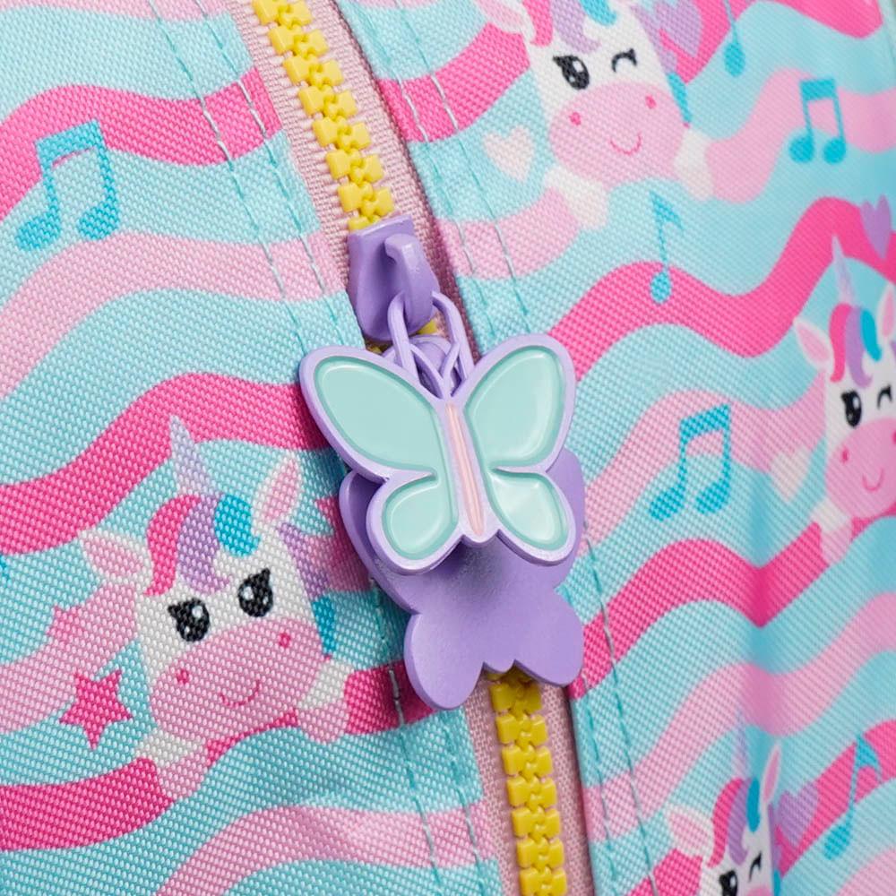 A Mochila Escolar Feminina Unicórnio Just Dance chega como a opção perfeita para quem busca uma mochila infantil resistente, espaçosa e com visual marcante. Pensada para acompanhar a rotina escolar, ela combina estampa personalizada, bolsos funcionais e detalhes que tornam o uso no dia a dia muito mais simples. Ideal para crianças que adoram cores vibrantes, brilho e personagens encantados.Organização e Espaço InternoA mochila oferece dois bolsos frontais em PVC transparente, cada um com ilustrações aplicadas de unicórnio que deixam tudo mais divertido e fácil de identificar. Esses bolsos são ótimos para itens pequenos que precisam ficar sempre à mão, como estojo, agenda ou snacks. Nas laterais, os bolsos para garrafa garantem hidratação ao alcance da criança sem abrir o compartimento principal. O espaço interno é amplo para cadernos, livros, material extra e tudo o que a rotina escolar exige.Conforto para Todos os DiasAs alças de costas acolchoadas foram desenvolvidas para suportar o peso dos materiais escolares com mais conforto, distribuindo melhor a carga nas costas da criança. A alça de mão reforçada facilita aquele momento rápido de pegar e levar. O design leve ajuda a criança a carregar o essencial sem esforço.Durabilidade e Detalhes que EncantamProduzida em material resistente, a mochila garante maior vida útil mesmo com o uso diário. O grande destaque visual fica por conta da combinação de cores em tons pastel, das ilustrações vibrantes e dos zíperes com puxadores personalizados em formato de borboleta, que dão um charme extra ao modelo. O acabamento em PVC mantém o brilho das artes e facilita a limpeza.Diferencial no mix Bagaggio: dois bolsos frontais em PVC com ilustrações aplicadas, algo raro em mochilas escolares.Cliente ideal: crianças que gostam de mochilas temáticas, coloridas e com muitos bolsos organizadores.Detalhe de design exclusivo: puxadores personalizados em formato de borboleta.Promessa central: organização fácil, visual encantador e resistência para acompanhar o ano inteiro.FAQEssa mochila é boa para o dia a dia escolar?Sim. Ela tem espaço interno amplo, bolsos funcionais e alças acolchoadas que ajudam muito na rotina escolar.Os bolsos transparentes são resistentes?Sim. Os dois bolsos frontais em PVC estruturado resistem ao uso diário e ainda facilitam a visualização dos itens.Cabe garrafa nos bolsos laterais?Cabe sim — os dois bolsos laterais foram feitos para levar garrafinhas padrão escolar.Ela é confortável?As alças acolchoadas tornam o transporte mais leve, mesmo com bastante material dentro.É fácil de limpar?Sim. O PVC frontal permite limpeza rápida, ideal para uso infantil.Material: PoliésterTamanho: 40 x 28 x 14 cmPeso: Mochila: 0,410kgCapacidade: 15,6LGarantia: 90 diasFaixa etária: Infantil (3 a 8 anos)Outros atributos: -Dois bolsos frontais em PVC transparente com detallhes de unicórnio. - Zíper Personalizado.- Alças nas costas personalizadas. - Bolso lateral para garrafa.