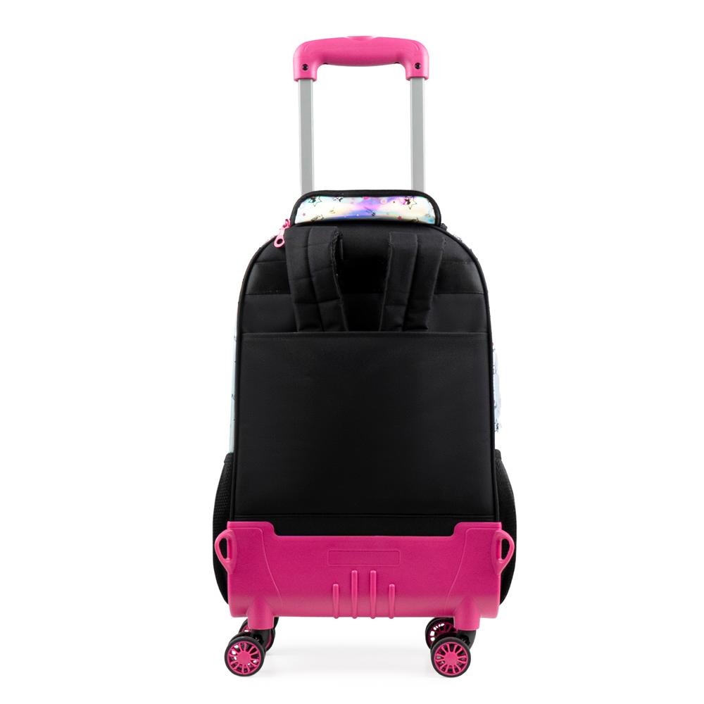 O Kit Mochila Escolar com Estojo Box Feminino Rebecca BonBon Preto é perfeito para quem busca praticidade, conforto e muito estilo na rotina escolar. Com design sofisticado da marca Rebecca BonBon, o kit une funcionalidade e um visual moderno e feminino.A mochila escolar possui excelente espaço interno para livros, cadernos e materiais, além de alças acolchoadas e ajustáveis, garantindo mais conforto no uso diário. O estojo box feminino é espaçoso e funcional, ideal para organizar lápis, canetas e acessórios escolares.Especificações:Dimensões: Mochila: 44 x 33 x 14 cm | Estojo: 14 x 22 x 6 cmPeso: Mochila: 0,6 | Estojo: 0,2Material:PoliésterCapacidade: Mochila: 20L | Estojo: 1,8LGarantia: 90 diasFaixa etária: Infanto Juvenil (3 a 8 anos) Outros atributos: - Chaveiros personalizados.- Detalhe em Strap. - Mochila com 4 rodas. -Dois bolsos frontais pequenos personalizados.- Estojo com elásticos para organização de diversos materiais.