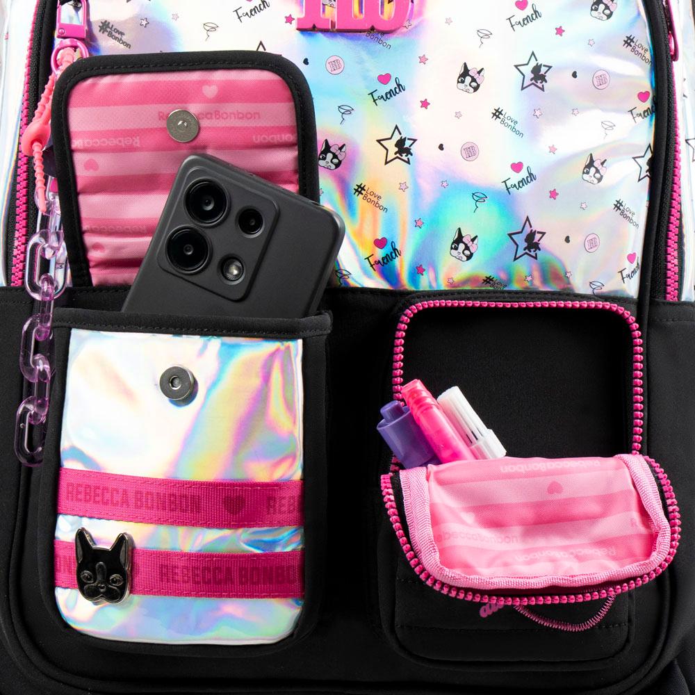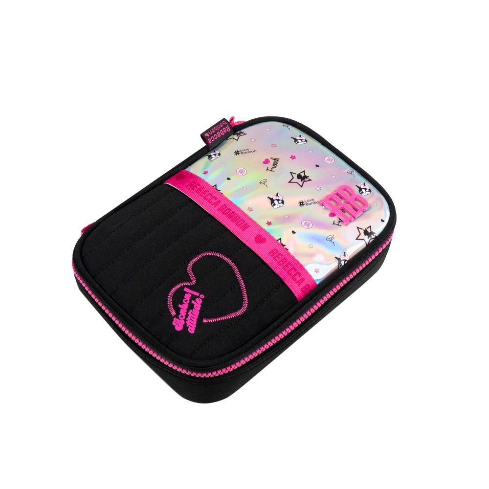 Kit Mochila Escolar + Estojo Feminino Rebecca BonBon Preto