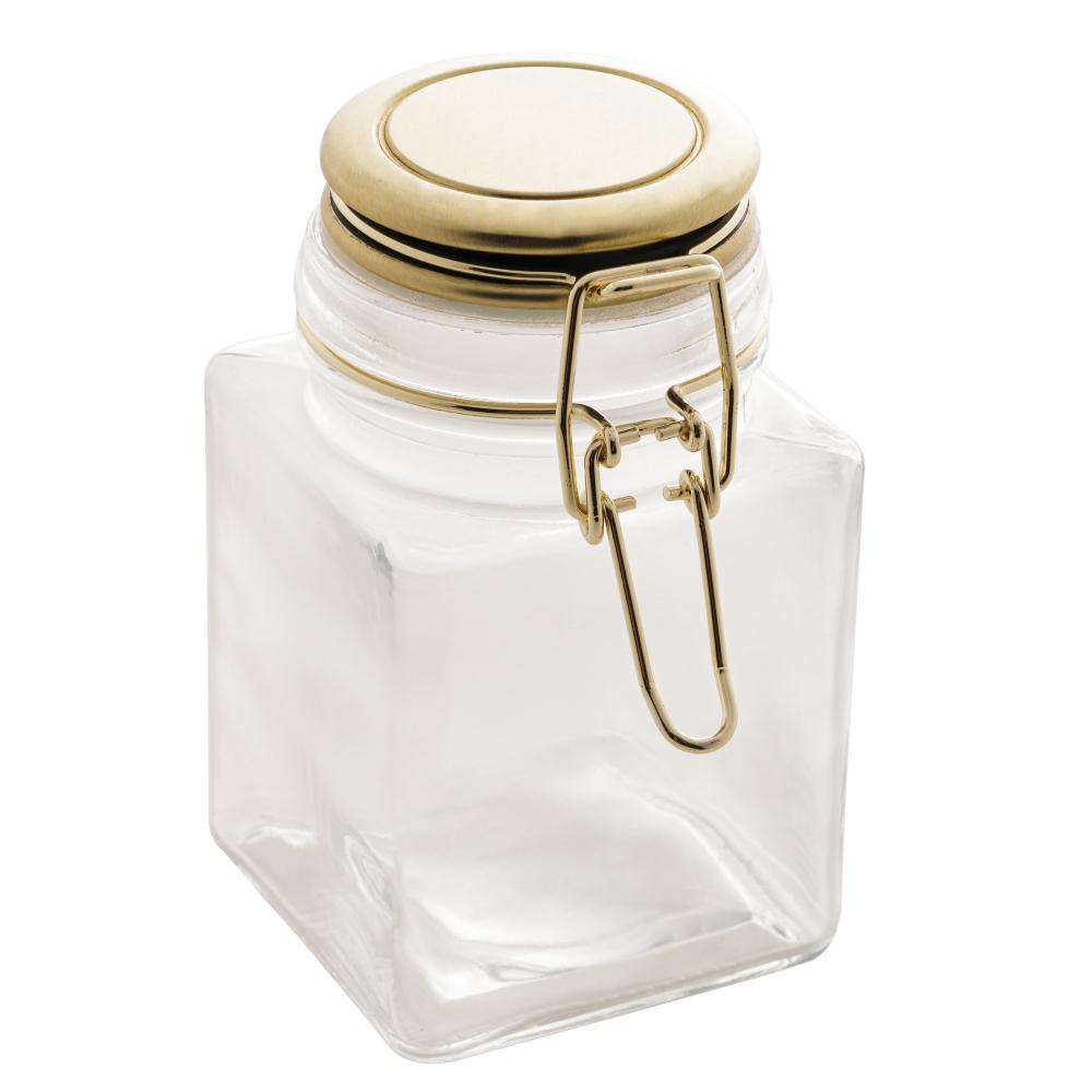 Pote Hermético Lyor Geométrico Dourado de Vidro e Metal 12cm