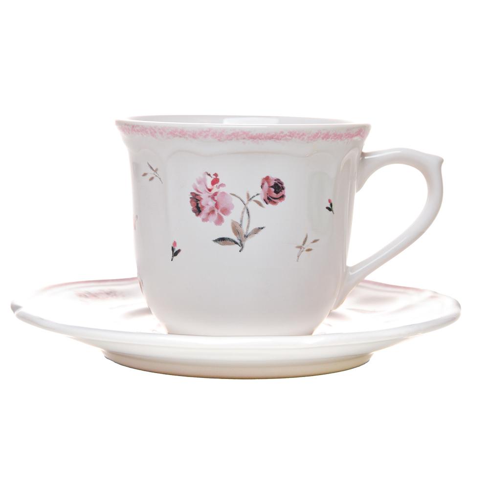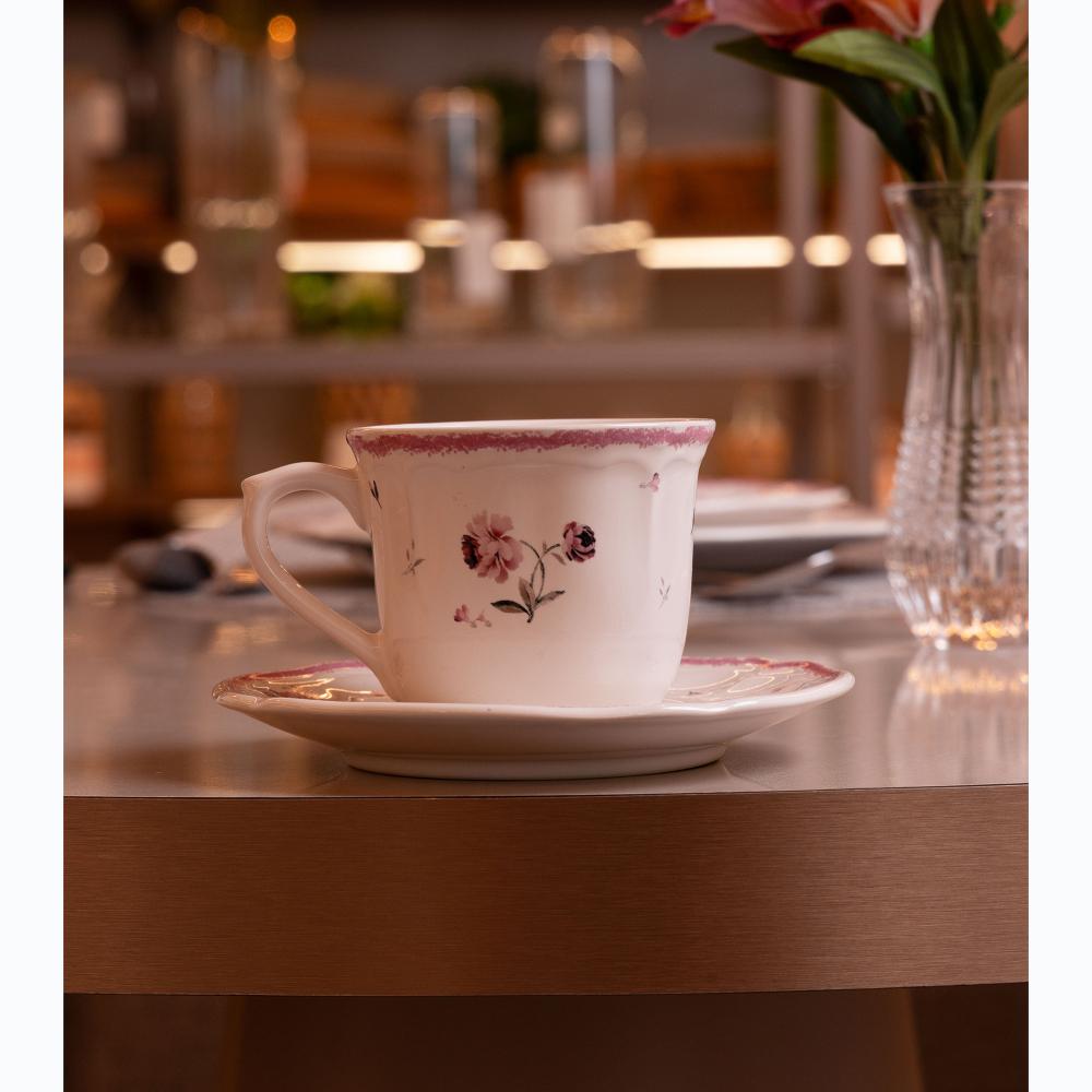 Xícara de Chá com Pires Wolff Florescer 200ml Rosa Cerâmica