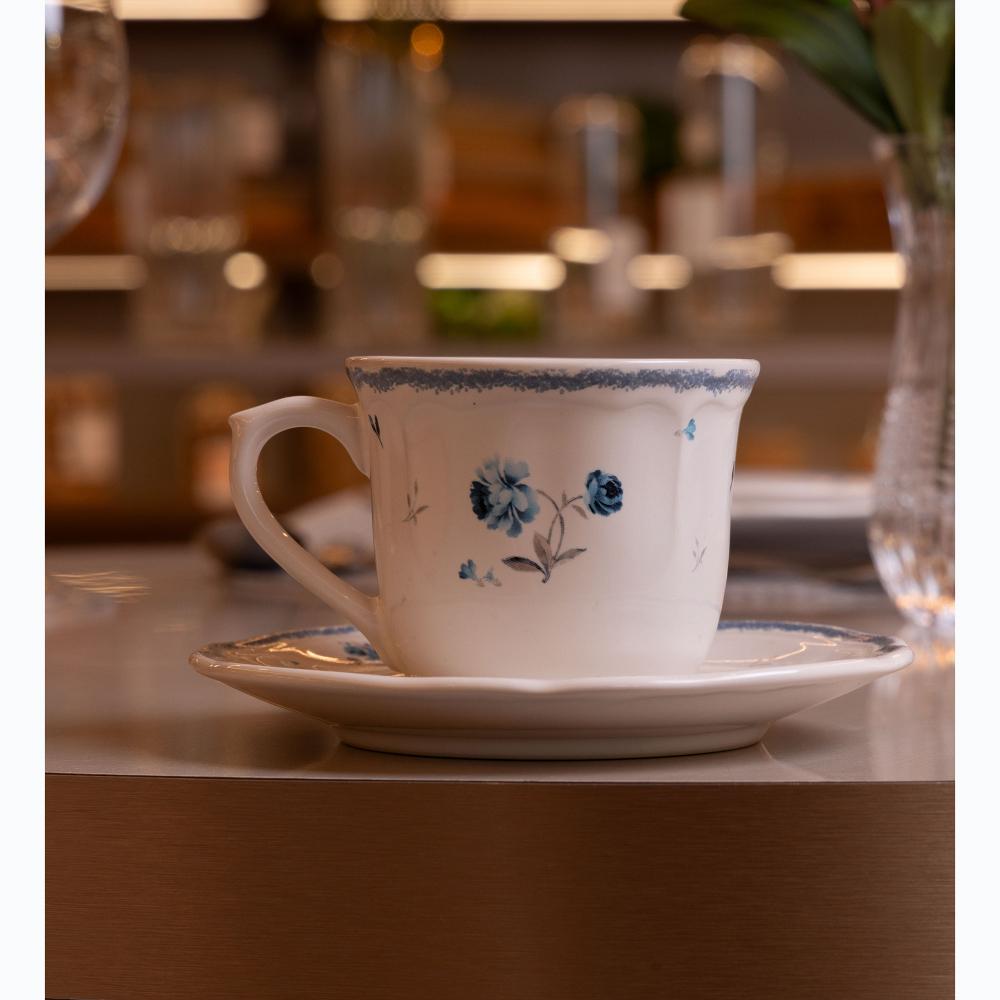 Xícara de Chá com Pires Wolff Florescer 200ml Azul Cerâmica