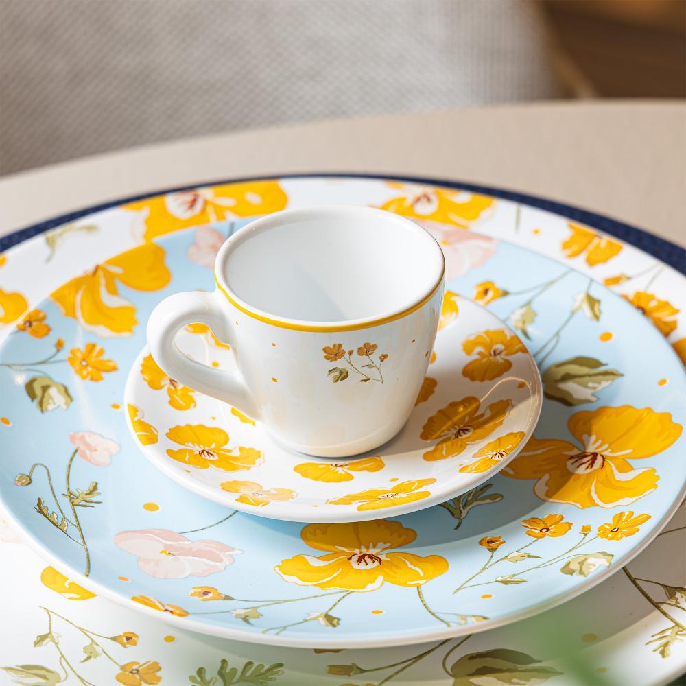 Xícara de Café com Pires Doce Encanto 90ml Amarelo Cerâmica