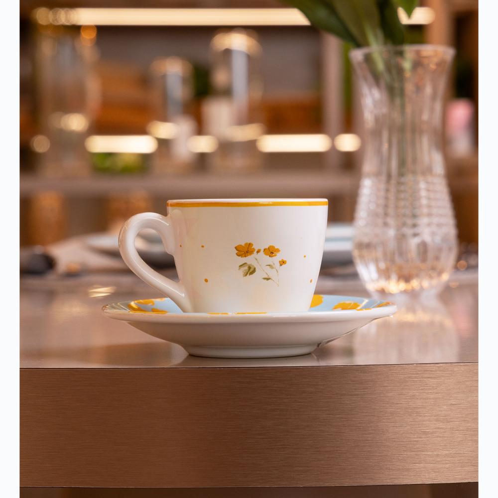 Xícara Café com Pires Doce Encanto 90ml Azul Claro Cerâmica