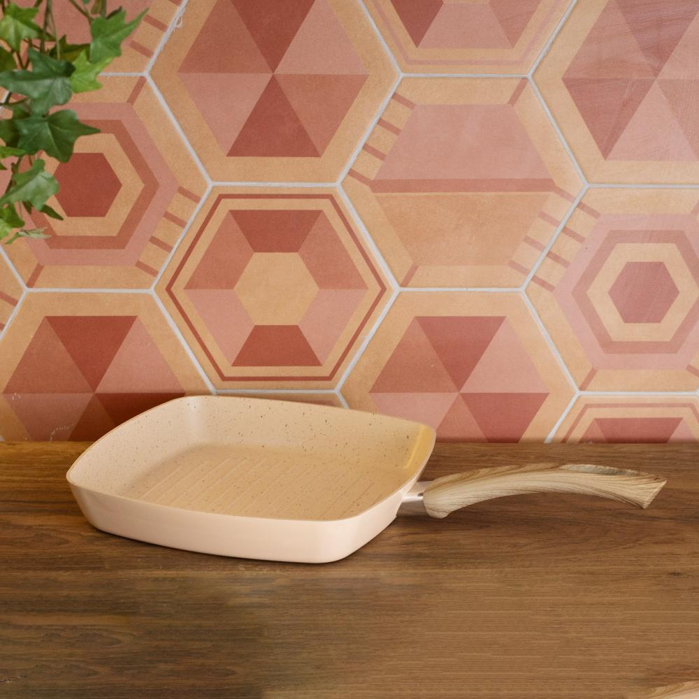Bistequeira em Alumínio com Revestimento Cerâmico Bege 24cm