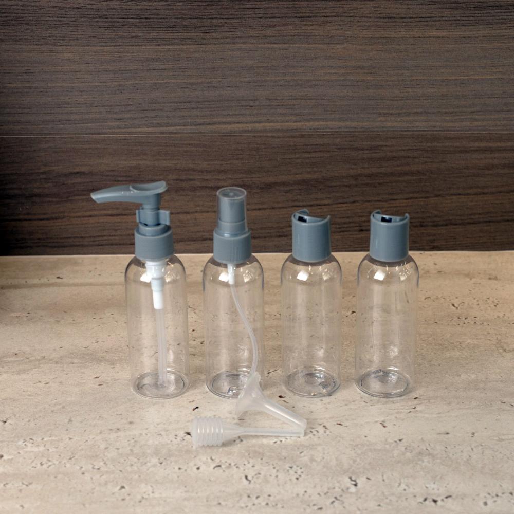 4 Frascos para Viagem Lyor de Plástico com Tampa Cinza