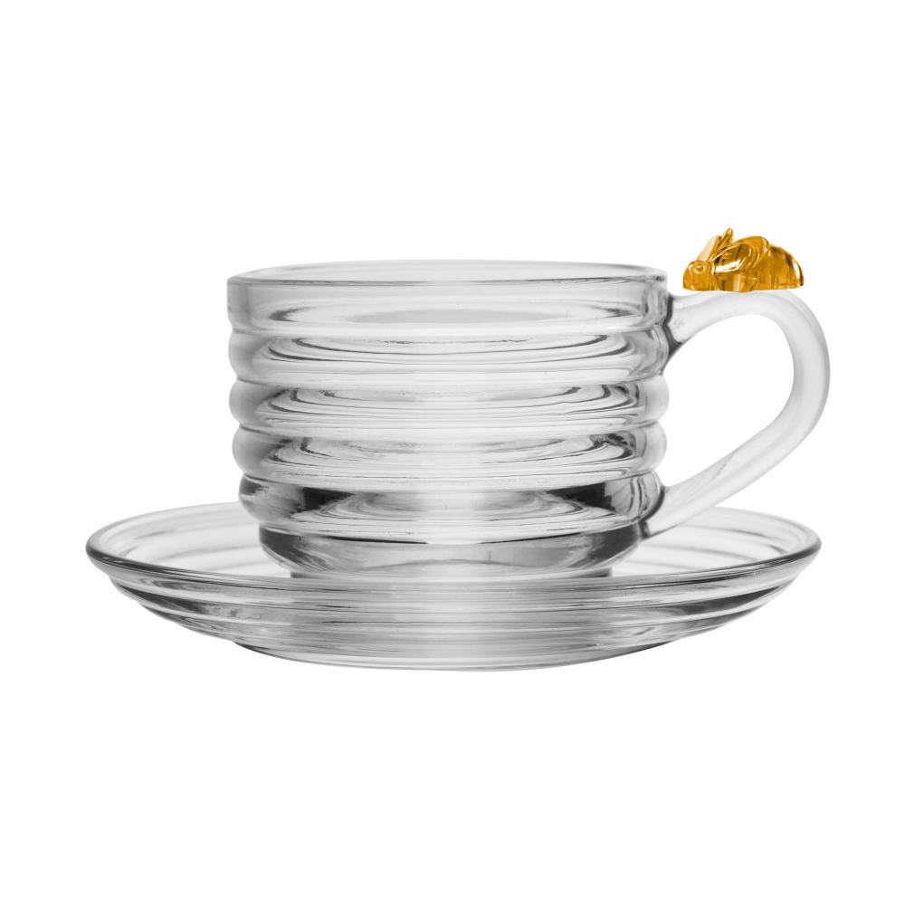 Xícara de Chá com Pires Lyor Little Bee de Cristal