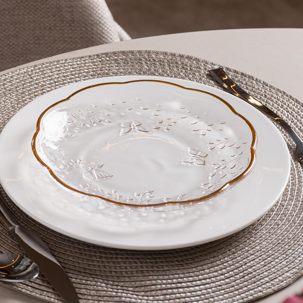 Prato para Sobremesa Lyor New Butterfly com Fio de Ouro