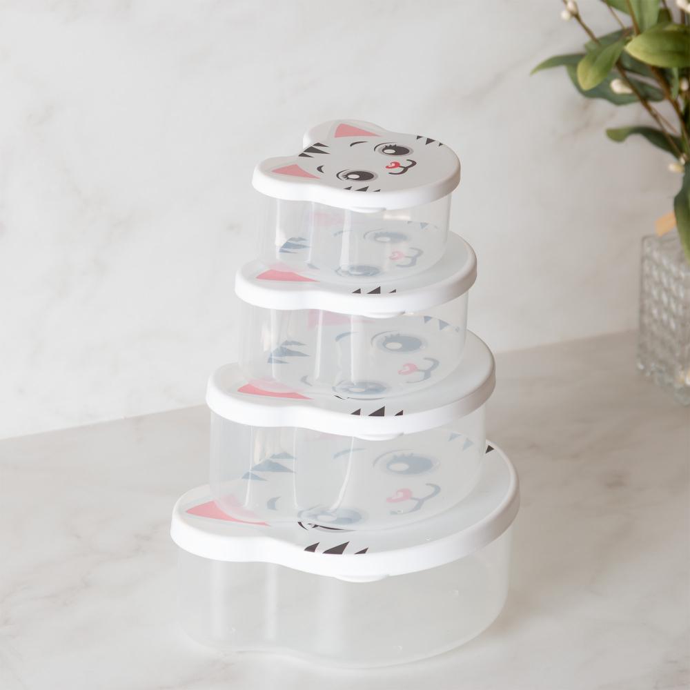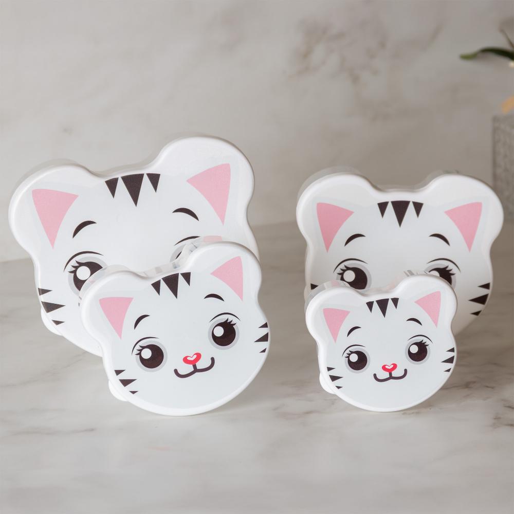 4 Potes para Armazenamento Gato Plástico LyorPara quem gosta de organizar com personalidade.Para quem gosta de organizar com personalidade.Com tampas brancas em formato de gatinho, esse conjunto traz quatro potes empilháveis que deixam a rotina mais leve, seja na lancheira, na bancada ou na despensa.• Conjunto com 4 potes• Formato lúdico de gatinho• Tampa fácil de manusear• Leves, empilháveis e versáteisFuncionais e com uma pegada divertida que conquista qualquer ambiente.Contém: 4 PotesMedidas Produto: Altura 5,80cm x Largura 13,50cm x Comprimento 15,50cmPeso: 0,12KgLavar com detergente neutro, esponja macia e secar imediatamente.