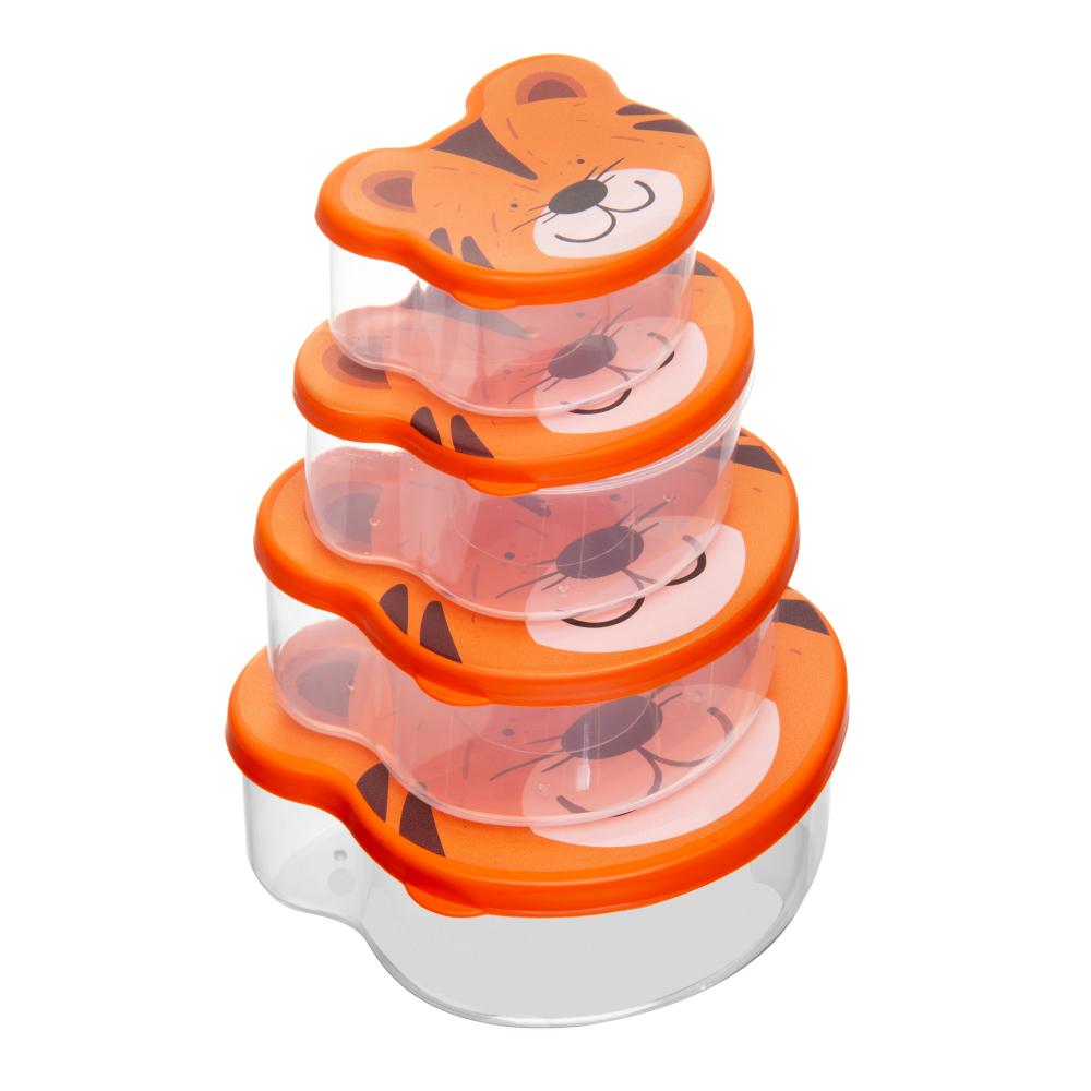 4 Potes para Armazenamento Tigre Plástico LyorCores vibrantes e praticidade para a lancheira.Cores vibrantes e praticidade para a lancheira.Com tampas em formato de tigre e visual laranja super divertido, esse conjunto infantil é ideal para guardar frutas, snacks ou porções do dia a dia escolar. Os potes são leves, empilháveis e fáceis de manusear.• Conjunto com 4 potes• Formato temático de tigre• Tampa com encaixe rápido• Perfeitos para lanches e refeições infantisOrganizar pode ser prático, fácil e divertido.Contém: 4 PotesMedidas Produto: Altura 5,80cm x Largura 13,50cm x Comprimento 15,50cmPeso: 0,12KgLavar com detergente neutro, esponja macia e secar imediatamente.